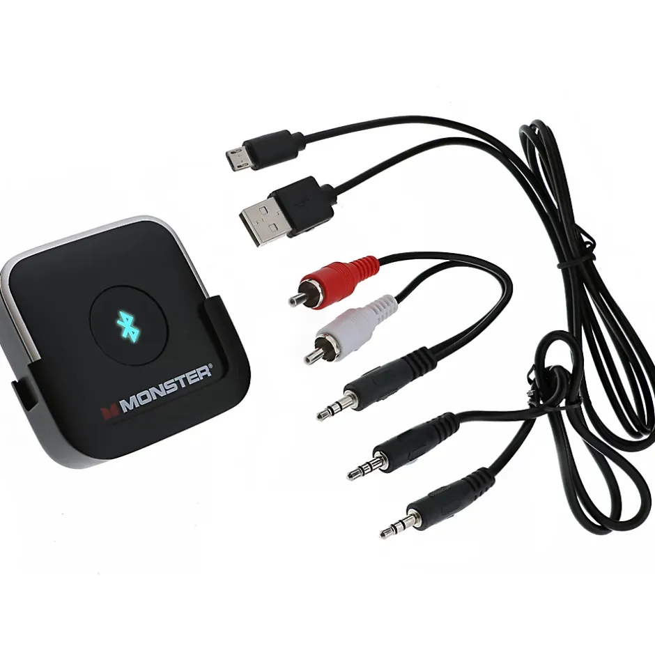 - Comprend: adaptateur mural USB, câble micro USB, câble audio 3,5 mm, adaptateur RCA vers 3,5 mm, casque Bluetooth.