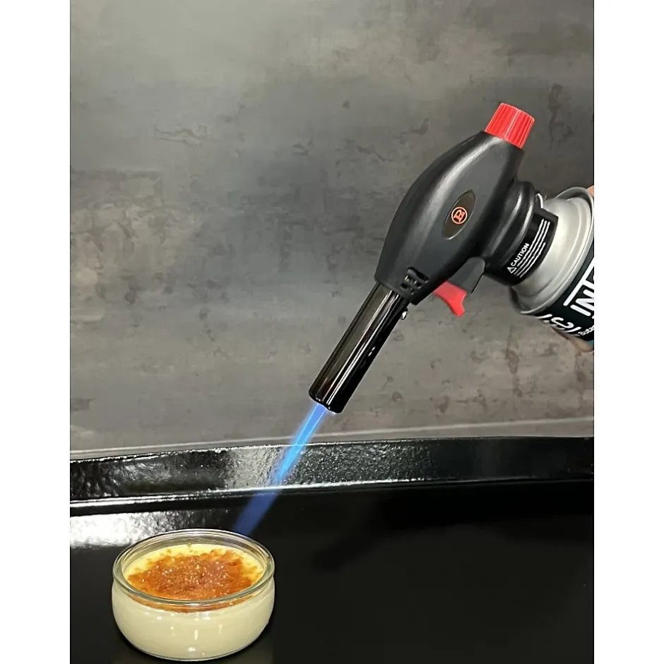 Le chalumeau cuisine FLAMBY MIDI est un bruleur professionnel à cartouche pensé pour : chefs, pâtissiers, traiteurs, bricoleurs et techniciens recherchant une flamme puissante, stable et réglable. Ce chalumeau gaz offre un allumage piézo automatique, une montée en température rapide jusqu’à 1500°C et un contrôle précis grâce à sa molette de réglage.Idéal pour caraméliser une crème brûlée, saisir une viande, faire fondre du fromage, décongeler rapidement ou réaliser de petits travaux techniques, le chalumeau gaz fonctionne avec des cartouches gaz 227g, largement répandues et faciles à trouver. Sa conception robuste et compacte (17 cm) permet une prise en main confortable et une utilisation intensive, en cuisine professionnelle comme en atelier.Polyvalent, performant et toujours prêt à l’emploi, le bruleur à gaz répond aux besoins des passionnés de gastronomie comme des artisans recherchant un chalumeau fiable à haute température.Points forts- Flamme réglable haute précision : contrôle optimal de la température jusqu’à 1500°C- Allumage piézo automatique : démarrage instantané, sans briquet- Polyvalence cuisine & bricolage : caramélisation, saisie, soudure légère, décongélation- Compatible cartouche gaz 227g type coréen : autonomie pratique et recharges facilesCaractéristiques : – Compatible : cartouches butane 227 gr- Puissance : 180W – Consommation : 13.1 gr/h- Allumage : Automatique Piezo- Flamme réglable- Température max : 1500 °C- Dimensions : 17 x 5 x 6.5 cm- Poids : 175 gr