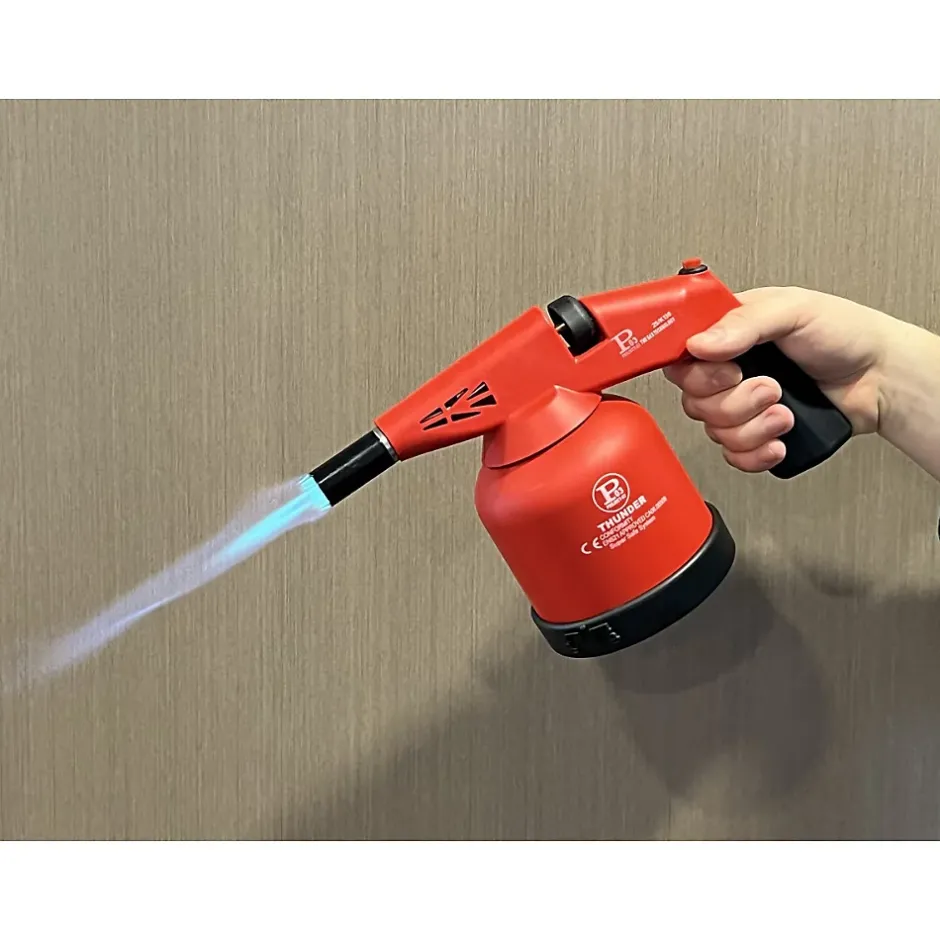 Le pack lampe à gaz THUNDER avec 4 cartouches de gaz 190 g EN417 est la solution complète pour disposer d’un chalumeau gaz puissant et prêt à l’emploi. Conçu pour les travaux techniques comme pour les usages domestiques, ce brûleur à gaz atteint une température maximale de 1350°C, idéale pour brasage, soudure, plomberie, décapage thermique ou encore pour allumer un barbecue, une cheminée ou un poêle à bois.Grâce à son allumage électronique intégré, la mise en route est simple et rapide. Le système breveté de montage de la cartouche facilite l’installation : il suffit d’insérer la cartouche dans le compartiment puis de revisser la base pour que le mécanisme interne effectue automatiquement la perforation.La flamme réglable permet d’ajuster la puissance selon le type de travail. Son fonctionnement à 360° facilite l’utilisation dans toutes les positions, même dans les zones difficiles d’accès. La poignée ergonomique antidérapante assure une prise en main confortable et un contrôle précis lors des manipulations.Points forts- Pack complet prêt à l’emploi : lampe à gaz THUNDER + 4 cartouches gaz 190 g EN417- Flamme puissante jusqu’à 1350°C : idéal pour brasage, soudure, plomberie et décapage thermique- Allumage piezo automatique : démarrage rapide sans briquet ni allume-gaz- Utilisation à 360° sécurisée : système limitant le retour de flammeCaractéristiques : – Inclus : 4 cartouches gaz 190 g Norme EN417 – Puissance max : 1.76 kW – Consommation : 127 g/h- Diamètre injecteur : 0.28 mm- Diamètre du bruleur : 0.20 mm- Allumage : Automatique Piezo à batterie (pile 1AAA) incluse- Flamme réglable- Système à 360°- Poignée ergonomique et caoutchoutée- Design rouge et noir- Corps en PVC robuste & Buse en acier inox- Température max : 1350 °C- Dimensions : 24 x 10 x 15.5 cm- Poids : 620 g