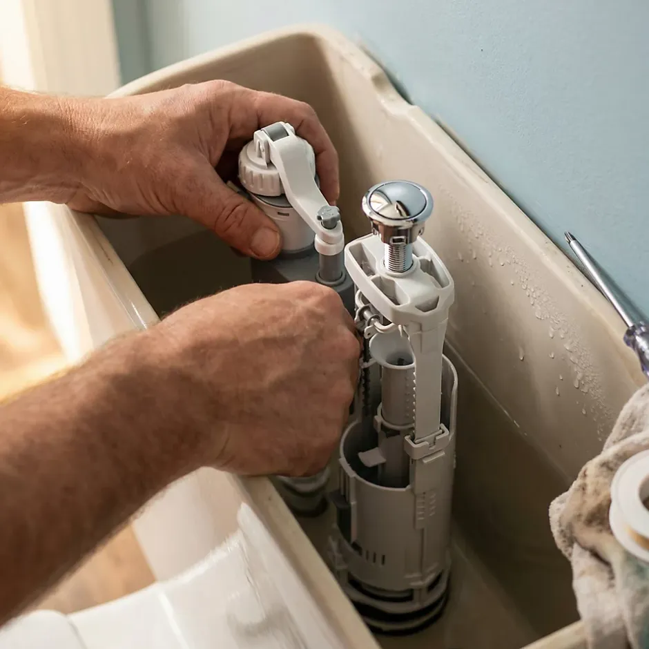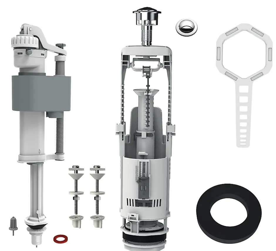 Chasse d’eau + robinet flotteur bas Flomasta, double bouton poussoir + étrier