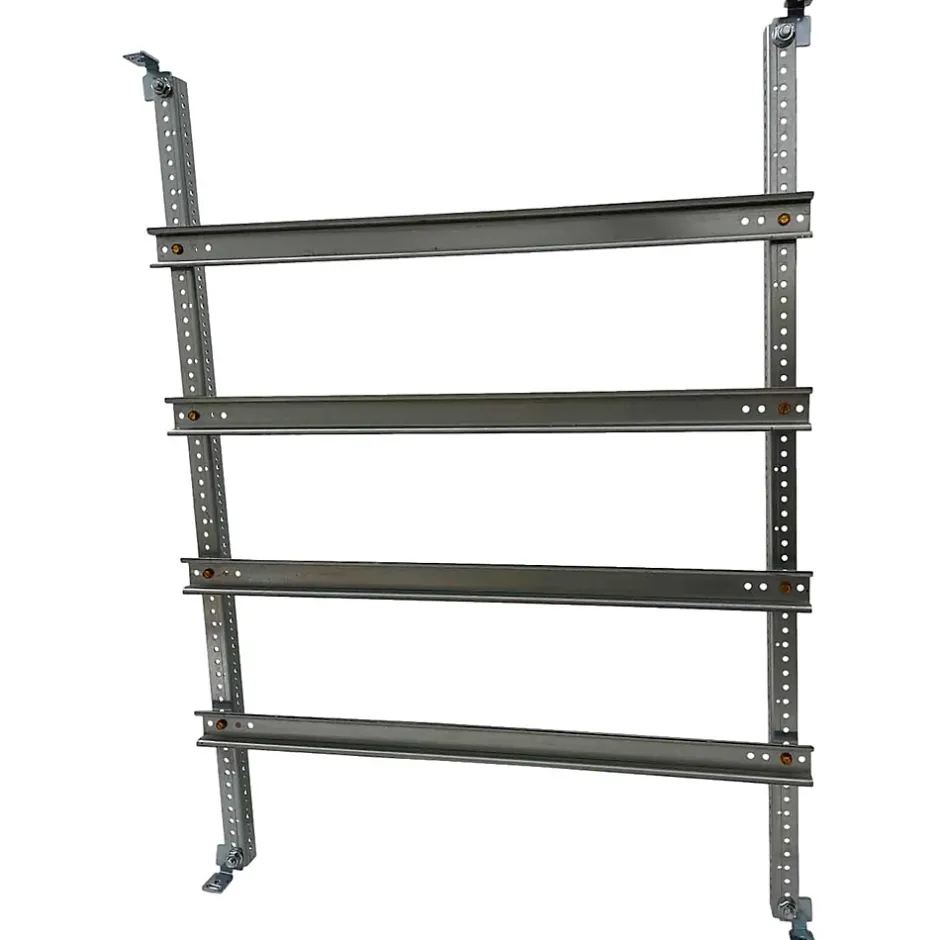 Chassis modulaire pour coffret Aria 86Ce châssis modulaire est compatible avec le coffret polyester ABB Aria 86. Il permet l’intégration de disjoncteurs et autres appareillages au format modulaireCe châssis modulaire permet l’intégration de 112 modules répartis sur 5 rangées de 2×18 modules.Afin d’obtenir un niveau de finition type tableau électrique, prévoyez l’installation du plastron référence : 831102.