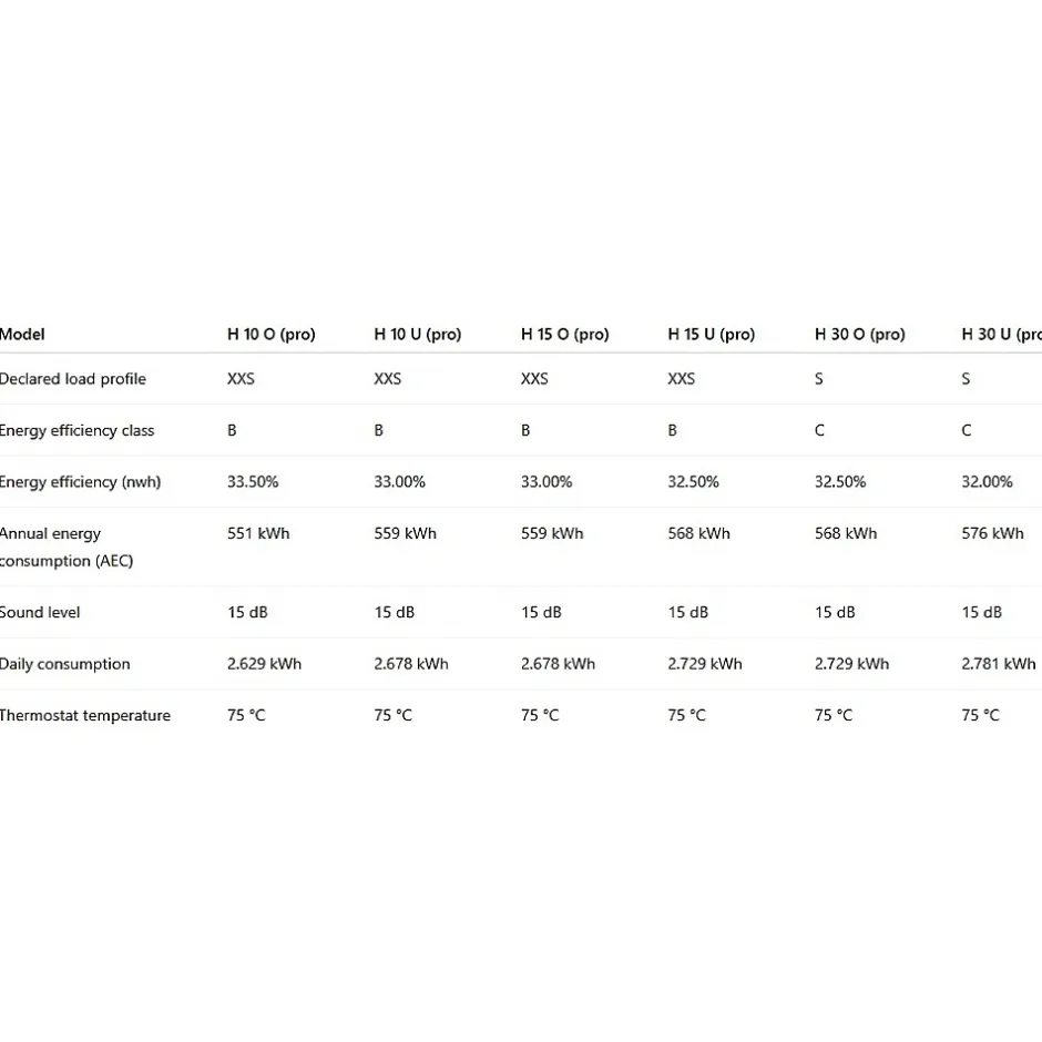 HPRO15-O : Chauffe-eau électrique compact HIT PRO 15L Thermex – Installation au-dessus de l’évier (arrivées d’eau en bas)Thermex HIT PRO — solution compacte pour disposer d’eau chaude dans une cuisine, une salle de bains, un bureau ou une résidence secondaire. Idéal en l’absence de réseau d’eau chaude.• Format compactS’installe au-dessus ou en dessous de l’évier.• Chauffage rapide1,5 kW pour atteindre 75 °C en 21 à 60 min selon le volume. Parfait pour vaisselle, toilette, mains.• AutonomieConvient aux maisons, bureaux, résidences — là où seule l’eau froide est disponible.• ÉconomiqueClasse énergétique B/C, consommation journalière de 2,63 à 2,78 kWh.• Sûr et fiableJusqu’à 8 bars, protection IPX4, thermostat intégré, sécurité anti-surchauffe.• SilencieuxFonctionnement à 15 dB — quasi inaudible.• Design universelModèles sous/au-dessus de l’évier, même design, raccords diffèrent.Pourquoi choisir Thermex HIT PRO ?Chauffage rapideFormat compactInstallation facileIdéal pour petits logements, bureaux, locationsMarque fiableVolumes disponibles :10 L — lavabos15 L — usage quotidien30 L — douche, ménageThermex — 70 ans d’expertise. Produits exportés dans 100+ pays. Conformes aux normes européennes.Caractéristiques du chauffe-eau Thermex HIT PRO 15 litresCapacité : 15 lPuissance : 1,5 kWTension / Fréquence : 230 V ~ / 50 HzPression maximale : 8 barsTemps de chauffe (Δt = 45 °C) : 31 minEfficacité énergétique : jusqu’à 33,0 %Classe d’efficacité énergétique : BConsommation annuelle d’électricité (AEC) : 559–568 kWhConsommation journalière : jusqu’à 2,729 kWhRéglage de la température : 75 °CNiveau sonore : 15 dBMontage : modèle O – au-dessus, modèle U – en dessousIndice de protection : IPX4Classe ERP : BDimensions : 380 × 340 × 410 mmPoids : 9,5 kg