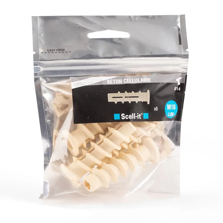 Cheville à visser M10 spéciale béton cellulaire Scell-It, 5 pièces