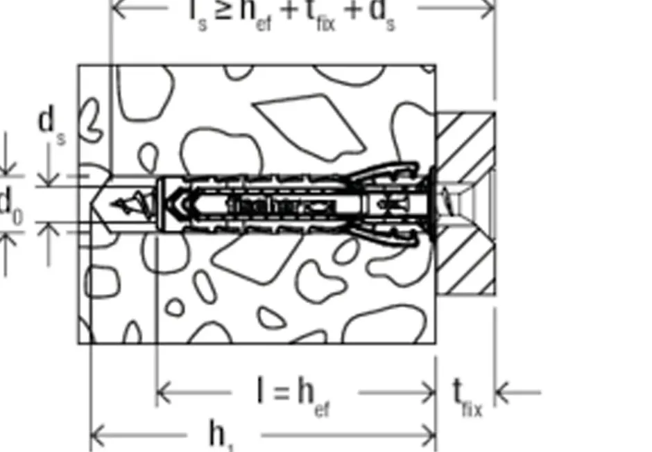 - La géométrie de la cheville permet une insertion facile dans le trou de forage en un simple coup de marteau.