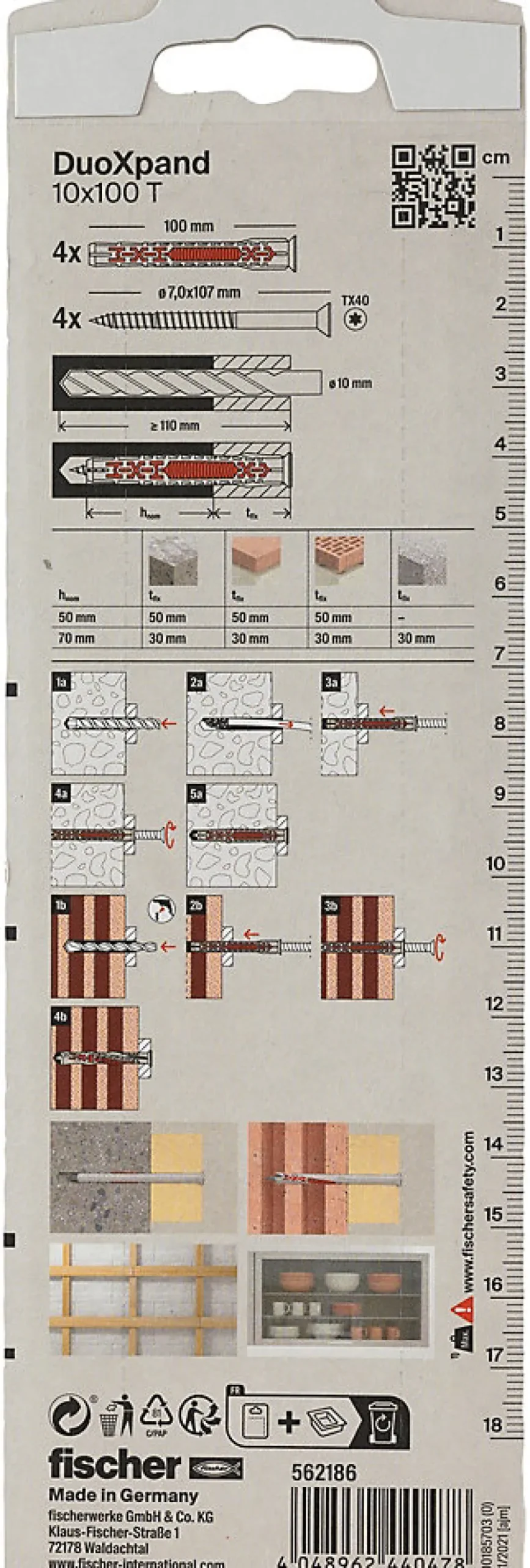 Cheville rallongée Fischer DuoXpand 10 x 100 mm, 4 pièces