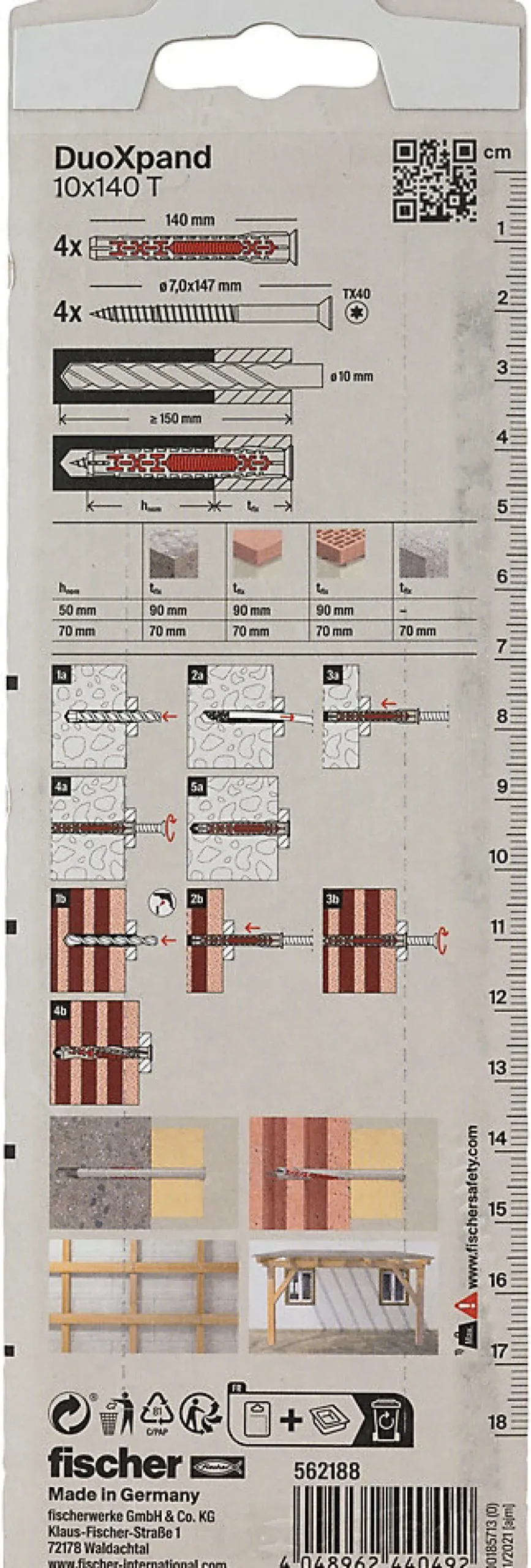 Cheville rallongée Fischer DuoXpand 10 x 140 mm, 4 pièces