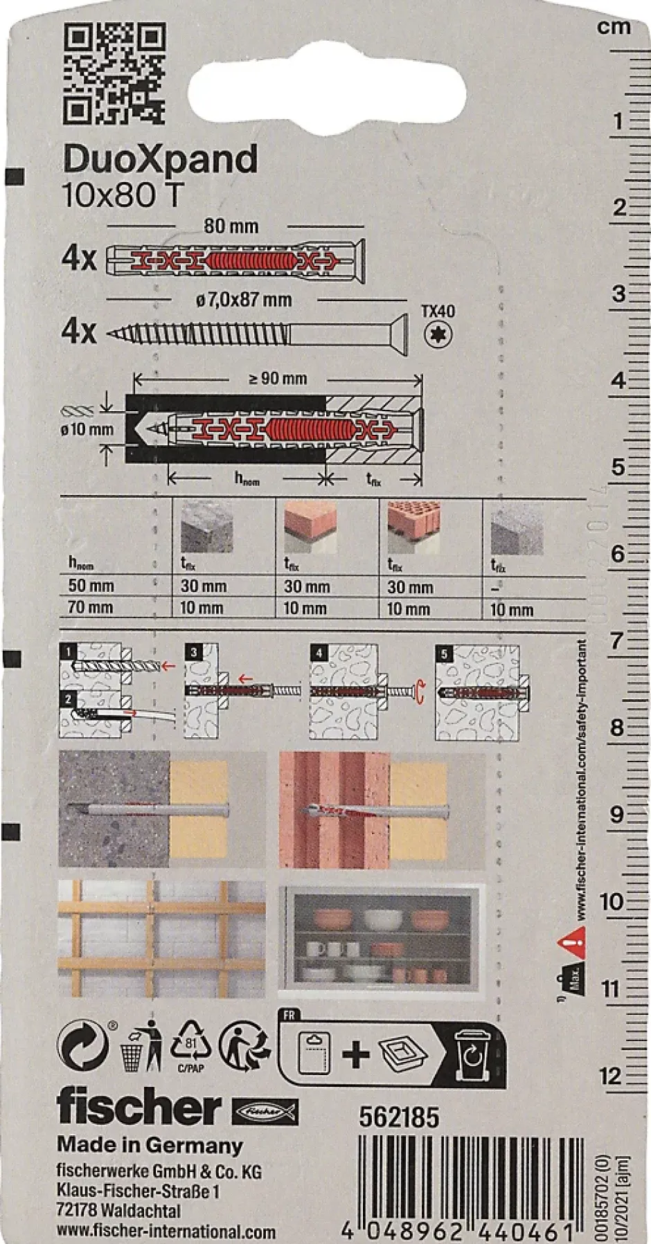 Cheville rallongée Fischer DuoXpand 10 x 80 mm, 4 pièces