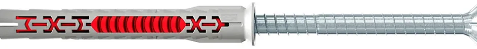 - Combo gagnant : en combinaison avec une vis à tête fraisée, la cheville rallongée bi-matière à géométrie lamellaire vous assure une fixation ultraperformante dans tous les matériaux de construction.