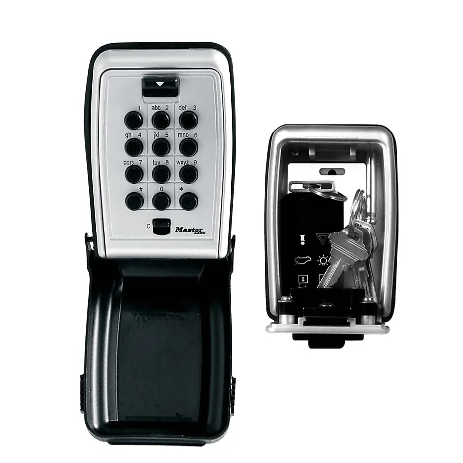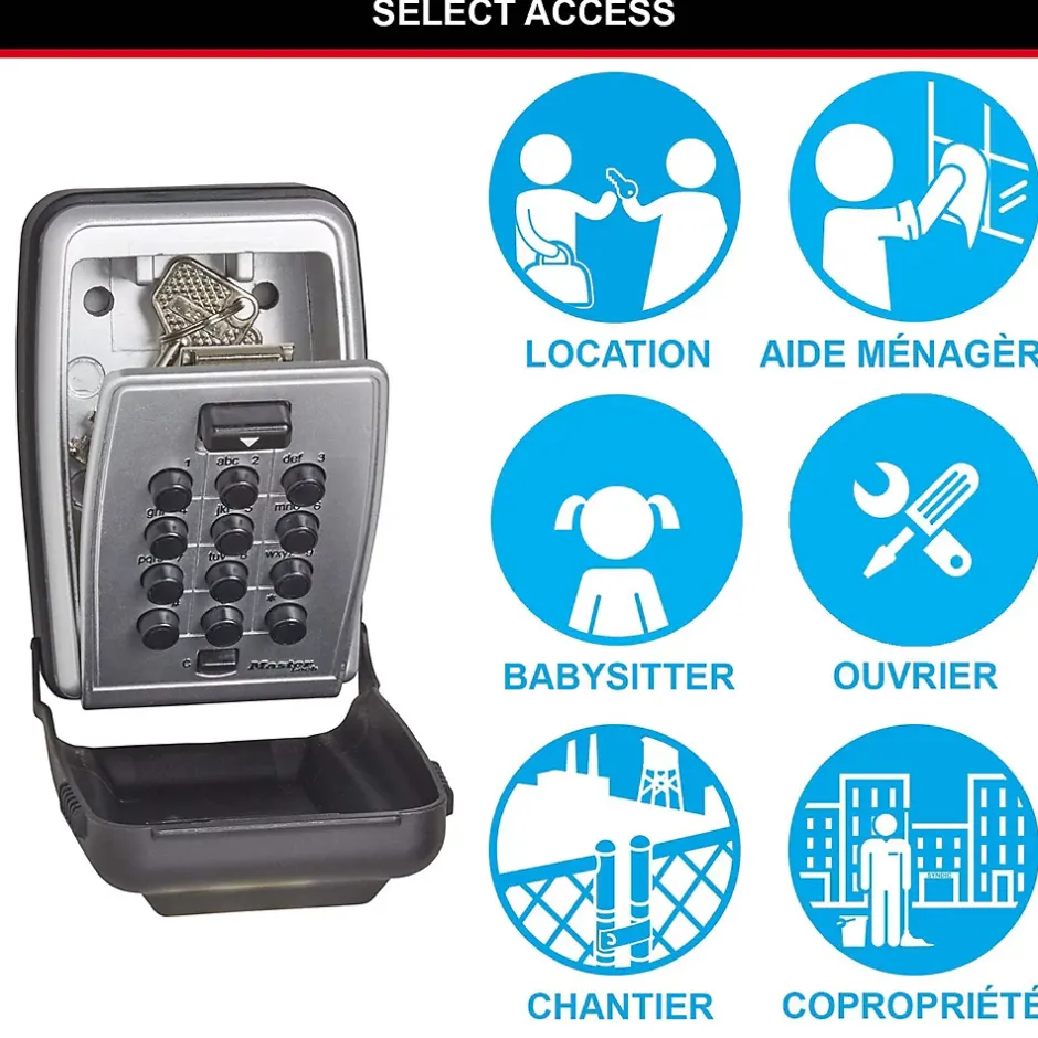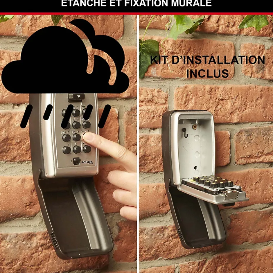 Le coffre Master Lock 5412 est un espace de rangement sécurisé à fixer au mur. Le dos renforcé de ce coffret est équipé de trous permettant de solidement le fixer dans un mur. La combinaison à 12 touches est programmable : utilisez le code qui vous convient et changez le code à votre convenance.