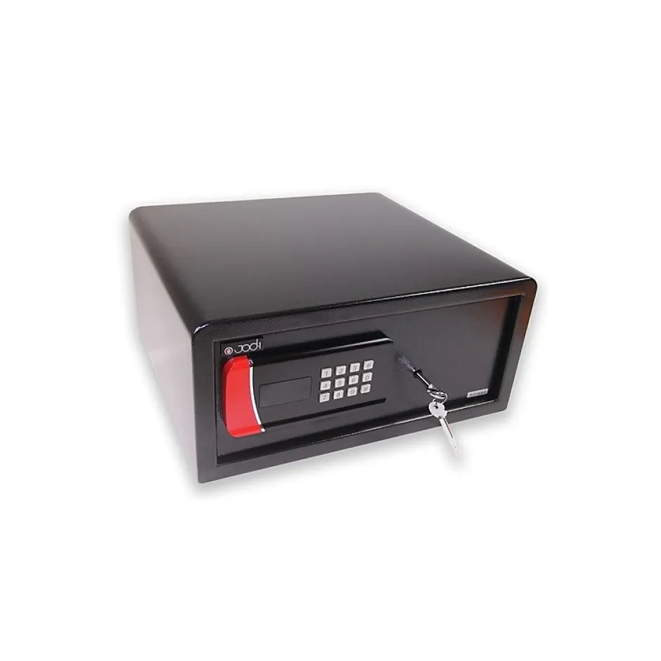 Coffre de sécurité contenance 25 Litres. Serrure électronique à codes Avec un volume de 25 litres, il a tout d’un grand et un moral d’acier. Il prendra malin plaisir à résister et à protéger des curieux toutes vos données papier (documents, actes notariés, dossiers confidentiels, etc.), numériques (clé USG, CD), bijoux, montres et souvenirs.Vous pouvez également y glisser votre matériel High Tech et informatique. Vos tablette, caméscope ou appareil photo, il les accueillera comme l’on reçoit des invités de marque. Un vrai gentleman. Robuste, il l’est. Une vraie bête, il résiste à tous les coups !Sa fabrication lui confère une excellente résistance à l’effraction. Grâce à ses trous de fixation prévus sur la partie arrière et basse du coffre, vous pourrez l’ancrer dans le mur porteur ou directement dans le sol béton. L’ouverture du coffre se fait à l’aide d’un code à 8 digits maximum. Si vous vous trompez 3 fois de suite, le coffre se mettra en sécurité et se bloquera pendant une durée de 5 minutes. Une garantie sécuritaire pour repousser les indésirables. Son système de verrouillage à code et son écran à cristaux liquides lui octroient une grande simplicité d’utilisation. En cas d’oubli de votre code, vous pourrez déverrouiller votre coffre à l’aide d’une clé de sécurité VDS à double panneton fournie. Confiez-lui vos secrets il en prendra le pl