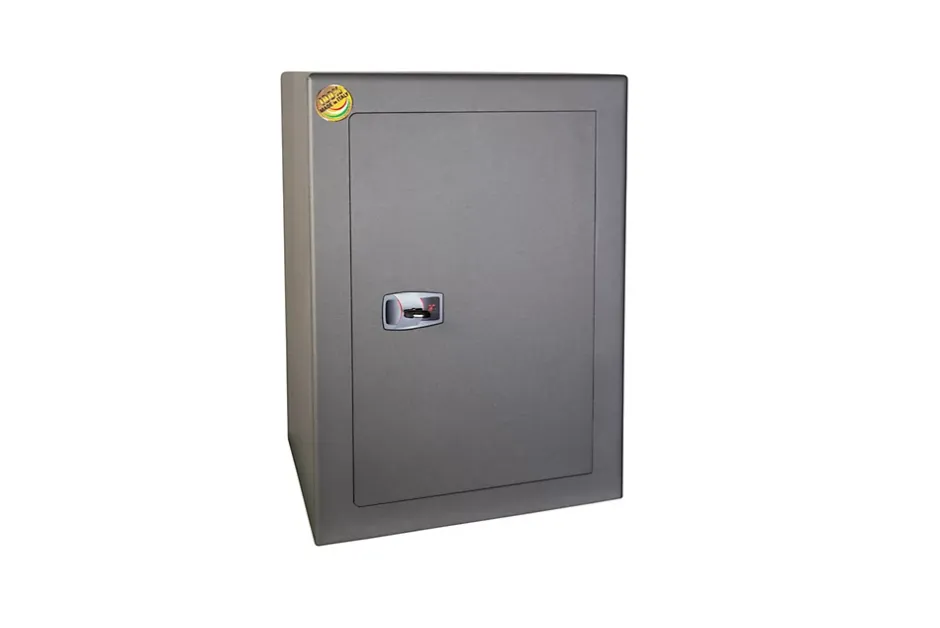 Cadre et porte épaisseur 8 mm.Corps épaisseur 4 mm.Serrure de haute sécurité EVO-LOCK à 8 gorges asymétriques et indépendantes certifiée EN 1300.Elle est basée sur l’utilisation de nouvelles gorges anti-crochetage oscillantes et de mentonnets à profil spécial qui opposent une résistance exceptionnelle aux attaques utilisant des systèmes sophistiqués de manipulation avec des rossignols spéciaux.Clé à double panneton avec profil spécial duplicable avec carte de propriété pour empêcher la reproduction non autorisée des clés (2 clés fournies).Clé prisonnière pênes rentrés.Pênes tournants anti-sciage en acier nickelé Ø 22 mm.Protection avec plaque d’acier au manganèse à l’endroit de la serrure.Profil intérieur spécial offrant une résistance plus longue à l’enfoncement de la porte.Soudures internes réalisées par un système robotisé.Soudure périmétrique continue cadre/corps.2 tablettes intérieures amovibles.Trous de fixation au dos et la base (4+4).Chevilles fournies.Peinture époxy au four.Fabriqué en Italie