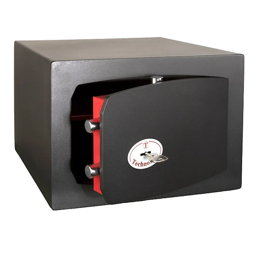 Serrure de sécurité à 6 gorges avec clé à double panneton (2 clés fournies).Clé prisonnière pênes rentrés.Pênes tournants anti-sciage en acier nickelé Ø 22 mm.Protection avec plaque d’acier au manganèse à l’endroit de la serrure.Soudure périmétrique continue cadre/corpsTablette intérieure amovible.Trous de fixation au dos et à la base (2+2).Chevilles fournies.Peinture époxy au four.Dimensions intérieures : H 26.5 x L 38.5 x P 30 cm