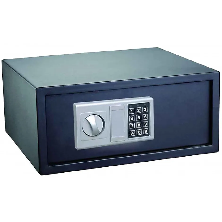 Coffre-fort de sécurité pour ordinateur portableCoffre-fort standard de 35 litres de capacité à ouverture par digicode et avec clés de secours. Permet de protéger ses biens de valeur pendant une absence temporaire ou la présence de personnes étrangères à la maison. Ses dimensions lui permettent d’abriter ordinateur portable ou tablette jusqu’ à 17 », ainsi qu’appareil photo, bijoux, chéquier, devises….CaractéristiquesNiveau de protection : 1- InitialType d’ouverture : DigicodeClés de secours : OuiPiles pour ouverture électronique fournies : OuiDimensions extérieures (largeur x hauteur x profondeur) : 52 x 20 x 40,6 cmDimensions intérieures (largeur x hauteur x profondeur) : 51,5 x 19,6 x 34,6 cmCapacité 35 LPoids : 14,5 KgMatériaux utilisés : AcierEpaisseur de la paroi : 1,5 mmEpaisseur de la porte : 4 mmNombre de pênes : 2Coffre à fixer : OuiType de fixation : Au sol ou muralKit de fixation : InclusEcran digital : NonFermeture motorisée : NonAnti-enfoncement : NonIgnifuge : NonValeurs assurables : NonCertification : NonGarantie : 1 + 1 an