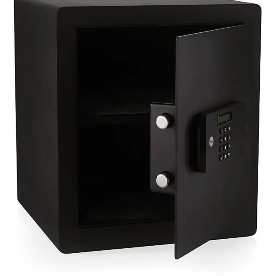 Coffre-fort YALE format bureau en acier blindé avec plaque anti-perçage, serrure électronique programmable (code PIN et empreinte digitale), éclairage LED intérieur et volume utile d’environ 38,5 L. Livré avec clé de secours. Garantie 2 ans.