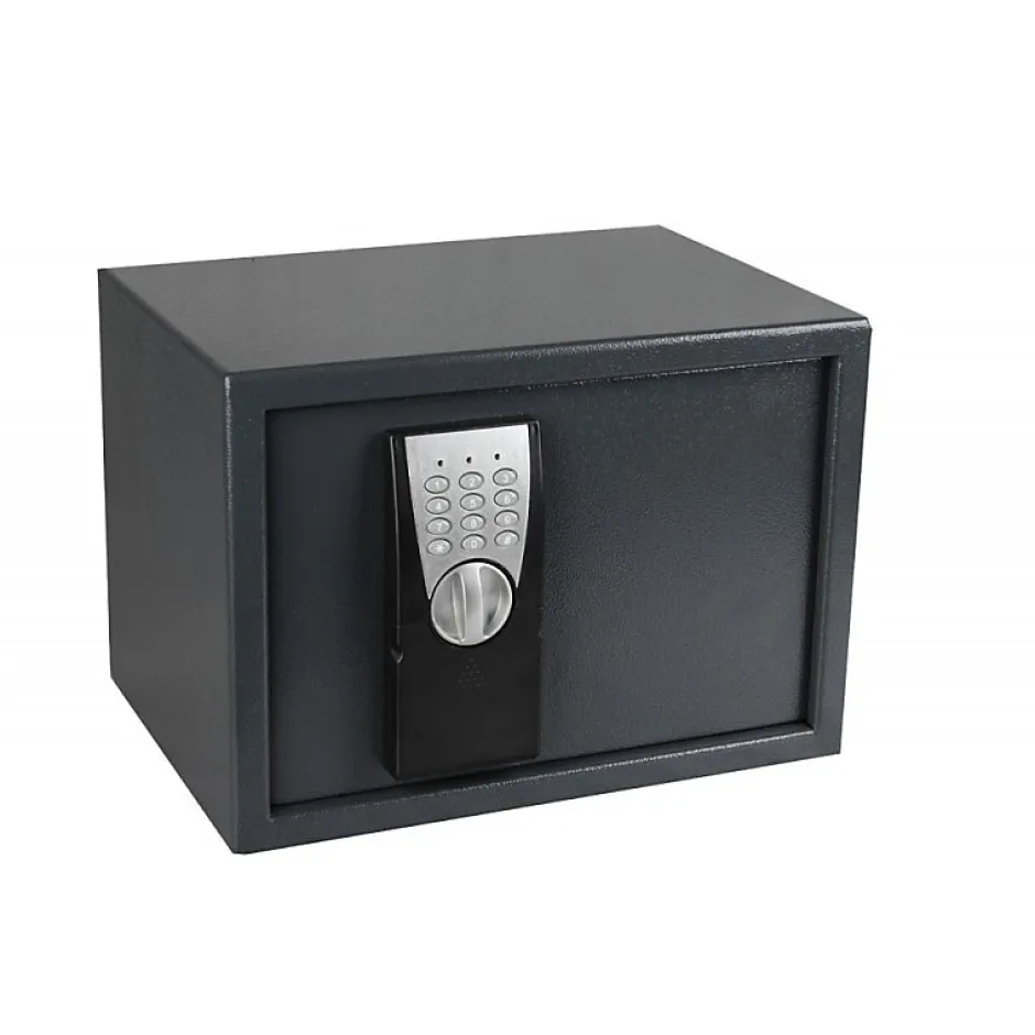 Coffre fort ouverture à digicode de 16 litresNiveau de protection : 1- InitialType d’ouverture : DigicodeClés de secours : OuiPiles pour ouverture électronique fournies : OuiDimensions extérieures (largeur x hauteur x profondeur) : 35 x 25 x 25 cmDimensions intérieures (largeur x hauteur x profondeur) : 34 x 24 x 19 cmCapacité 16 LPoids : 9,8 KgMatériaux utilisés : AcierEpaisseur de la paroi : 2 mmEpaisseur de la porte : 4 mmNombre de pênes : 2Coffre à fixer : OuiType de fixation : Au sol ou muralKit de fixation : InclusEcran digital : NonFermeture motorisée : NonEclairage intérieur : NonPrise électrique intérieure : NonAnti-enfoncement : NonIgnifuge : NonValeurs assurables : NonCertification : NonGarantie : 2 + 1 an