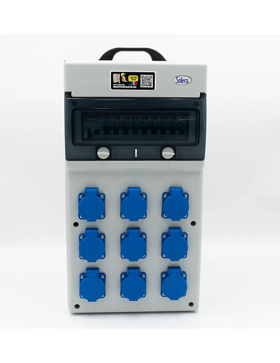 Coffret de prises monophasé 16A-enveloppe ABS 410x272x110 IP 65 IK 08-13 modules-poignée -interrupteur différentiel 2P 40A 30mA TAC-9 PC 16A P+N+T standard domestique IP44-9 disjoncteurs P/N 16A 3kA-C-bornier de terreMonté , câblé et testé – coffret electrique de chantier Coffret de distribution sur prises , norme CE , 9 prises et 9 disjoncteurs , différentiel 30mA , idéal pour l’alimentation des chantiers ou des manisfestations. Coffret de chantier monophasé 9 prises 16A chez vous en 24 heures : Coffret monophasé, . Coffret de distribution sur prises monophasé avec un disjoncteur par PC