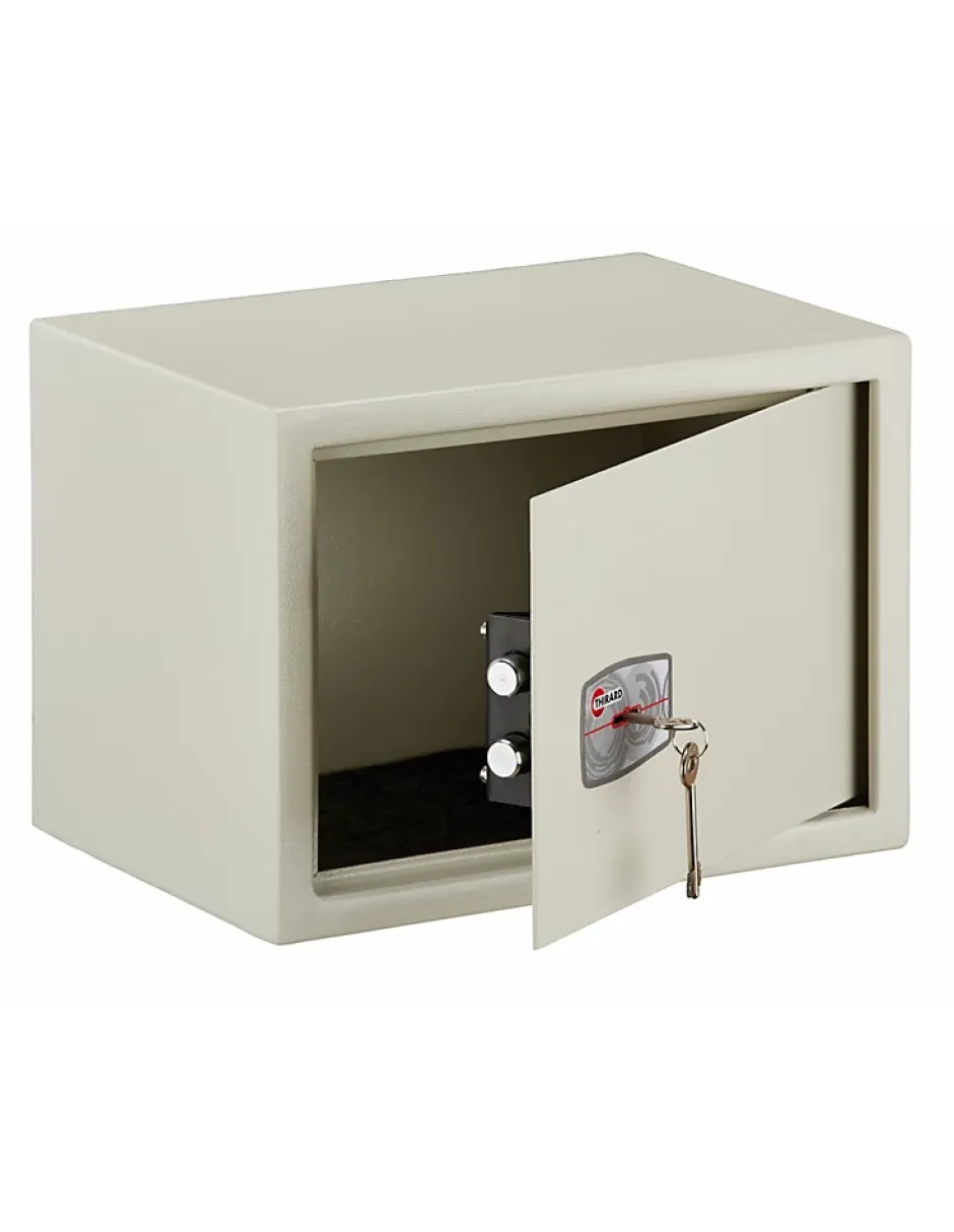 Le coffret de sécurité SedanLe coffret de sécurité Sedan est parfaitement adapté pour sécuriser vos petits objets de valeur.Les mécanismes de sécuritéLe coffret de sécurité Sedan dispose de plusieurs mécanismes de sûreté.Fermeture par clé (2 clés fournies) ;Fonctionnement de clé prisonnière : la porte reste ouverte tant que la clé n’est pas récupérée, et la porte verrouillée ;Verrouillage par 2 pênes horizontaux de 18 mm de diamètre.Installation Le coffret de sécurité Sedan est livré, prêt à être utilisé. Ce coffret de sécurité dispose également de 4 trous de fixation au dos et à la base, vous permettant ainsi de garantir une plus grande sécurité. Il vous suffit de le poser à l’endroit souhaité, et de la fixer.