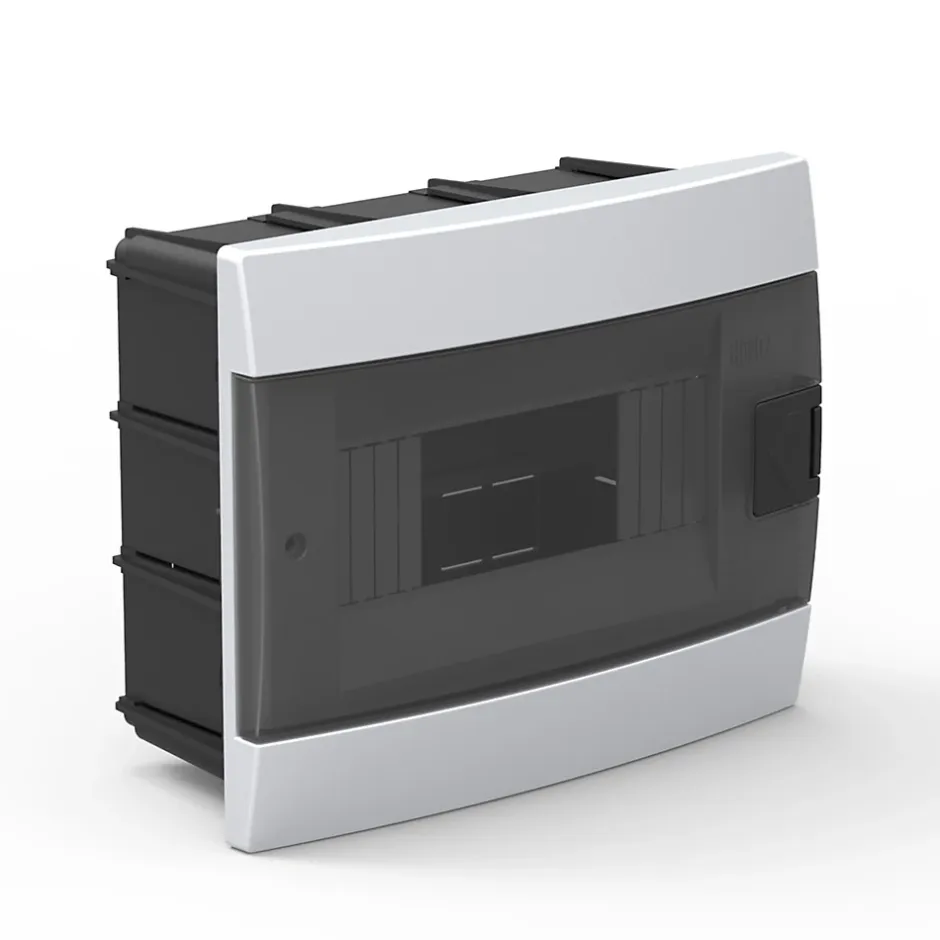 - Construction encastrée – Les tableaux de distribution de ce type sont conçus pour être montés à l’intérieur d’un mur. Ils nécessitent de découper un espace approprié dans le mur ou une autre surface, ce qui rend l’appareil moins visible et donne un aspect esthétique à l’ensemble de l’installation électrique.