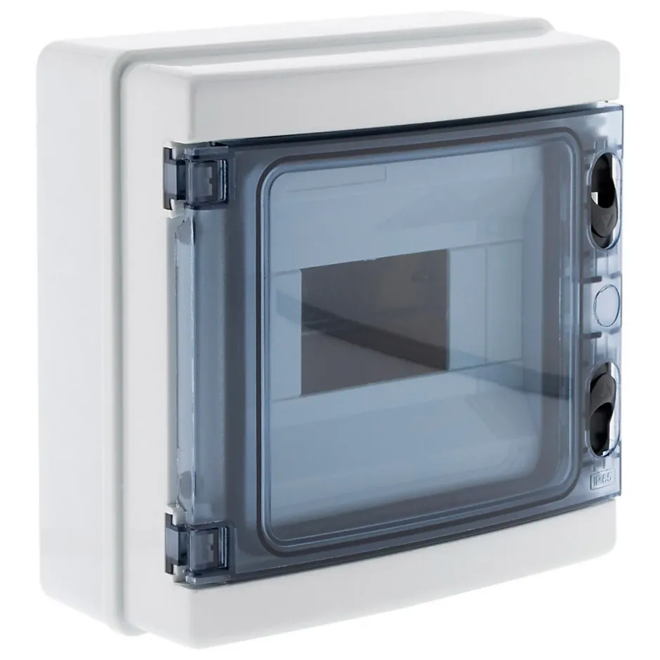 Coffret électrique étanche. Couleur(s) : blanc. Nombre de modules : 4, 8 ou 12. Indice de protection : IP65. Norme(s) : CE