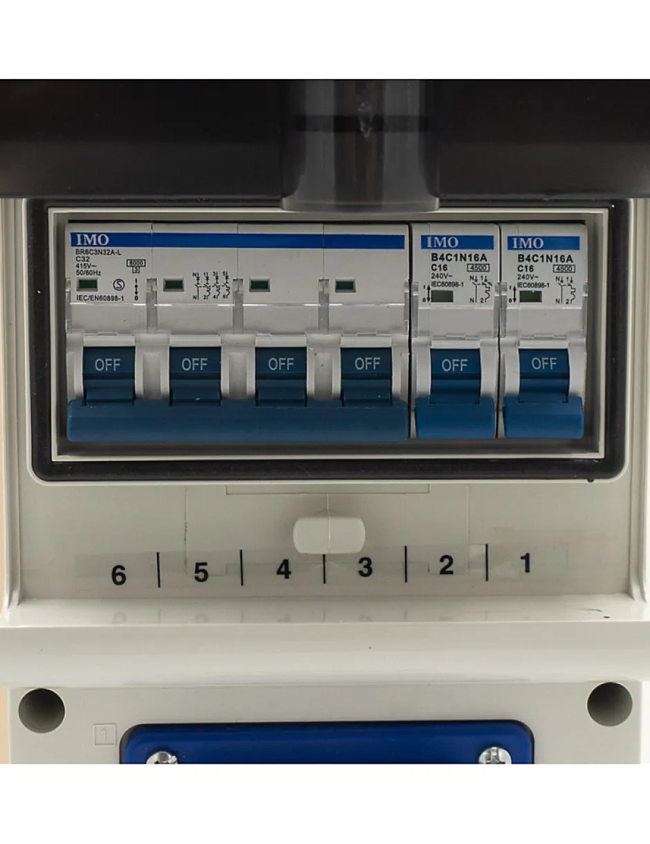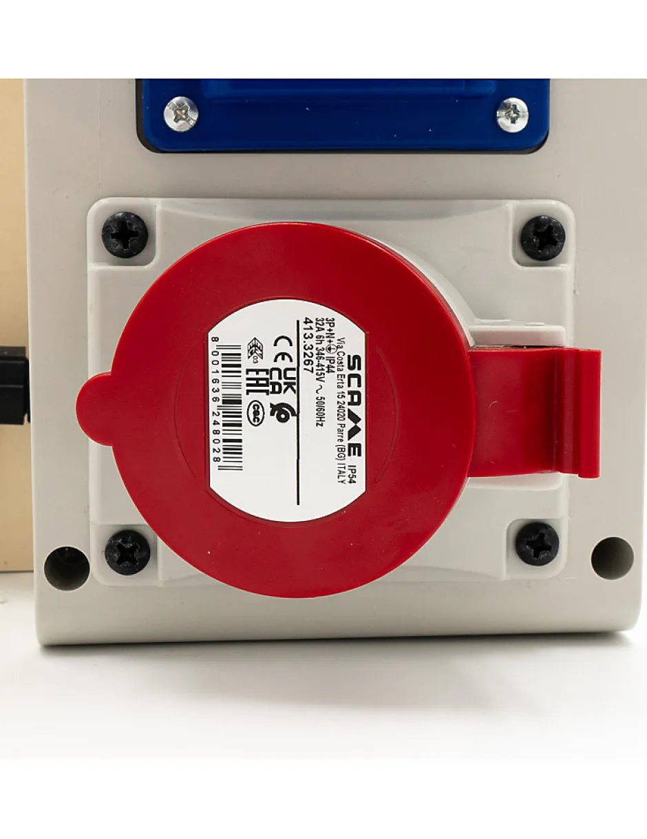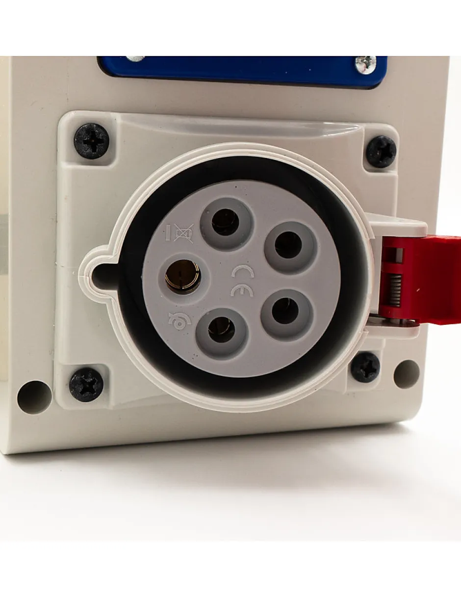 Comptage tarif bleu 30/60A triphasé avec coffret prises accoléDétail : – 1 coffret de comptage tarif bleu 30/60A triphasé- 1 différentiel 4P 63A 30mA- 1 coffret PVC dim 440x135x95 – IP65 – IK08- 1 disjoncteur modulaire 4 pôles courbe C 32A 4.5kA- 1 socle incl. 32A 3P+N+T CEI IP44- 1 disjoncteur modulaire P/N courbe C 16A 4.5kA- 1 disjoncteur d’abonné différentiel AGCP 4P 30/60 500mA plombable NF-C 62-411- 2 socles 16A 250VAC – 2P+T > IP44 – coffret electrique de chantier Coffret de chantier triphasé 18/36 Kws avec 2 prises mono 230V et 1 prise tri 32A ,. Coffret de chantier triphasé 18/36 Kws équipé de prises extérieures : Triphasé 18/36KW, compteur de chantier triphasé avec prises. Coffret triphasé 18/36 Kws avec prises