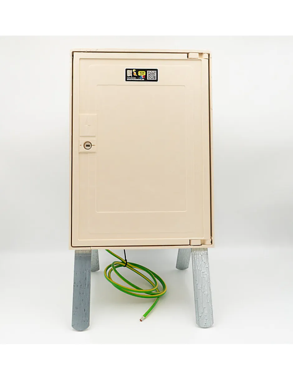 Coffret triphasé 30/60 Ampères 18/36KwsCoffret complet et conforme aux NF-C 14-100/ 15-100 .Caractéristiques techniques : – enveloppe coffret NH 62-S-20 – coffret coupe circuit tétrapolaire 60 Amp taille 00 plombable – disjoncteur d’abonné différentiel AGCP 4P 30/60 500mA plombable NF-C 62-411 – interrupteur différentiel haute sensibilité 4P 63 Ampères 30 mA – boitier IP2X pour interrupteur différentiel – câblage en fil cuivre souple de section 16² avec embouts sertis – emplacement pour fixation du compteur (compteur fourni par le fournisseur d’ énergie) – tension de 400 Volts – puissance maxi 60 ampères 36000 watts – 4 prises 16A P+N+T standard domestique – 1 prise 16A 3P+N+T standard CE – 1 prise 32A 3P+N+T standard CE – 2 disjoncteurs P/N 16A courbe C 4.5kA – 1 disjoncteur 4P 16A courbe C 4.5kA – 1 disjoncteur 4P 32A courbe C 4.5kA – 1 piquet de terre d’un mètre – câble de terre d 2 mètres – 3 mètres de câble 4×25² pour le raccordement au réseau – piétement acier galvanisé 3mm – gaine TPC 2 mètres – garantie de 2 ans En option , arrêt d’urgence et longueur de câble réseau supplémentairelivraison gratuite sous 24 à 48 heures en point relais par UPS si commande avant 15 heures – coffret electrique de chantier Coffret de chantier triphasé avec 4 prises mono 16A et 2 prises tri 32A et 16A. Coffret de chantier triphasé 18/36 Kws équipé de 7 prises : Triphasé 18/36KW, coffret de chantier triphasé 6 prises. Coffret de chantier triphasé complet avec distribution sur 6 prises