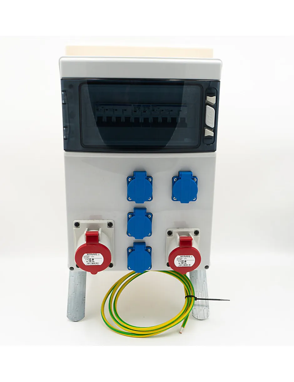 - Coffret de chantier triphasé complet avec distribution sur 6 prises
