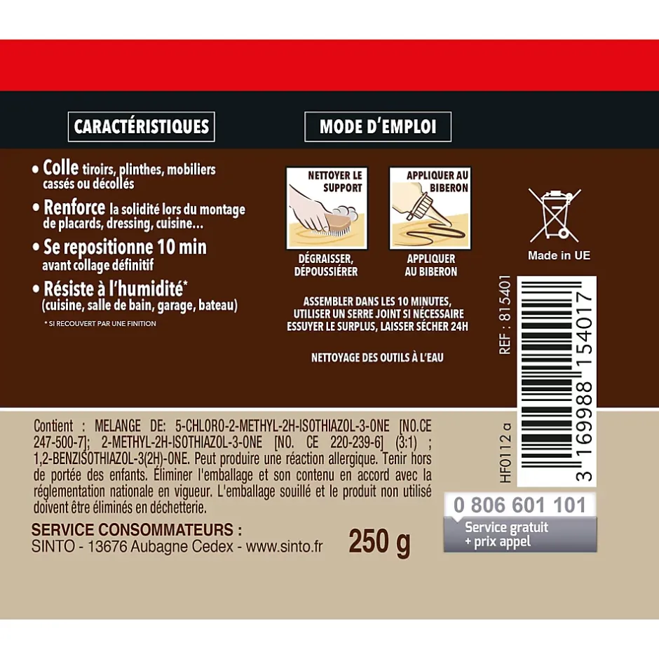 Colle à bois tous bois et dérivés Sintobois 100g