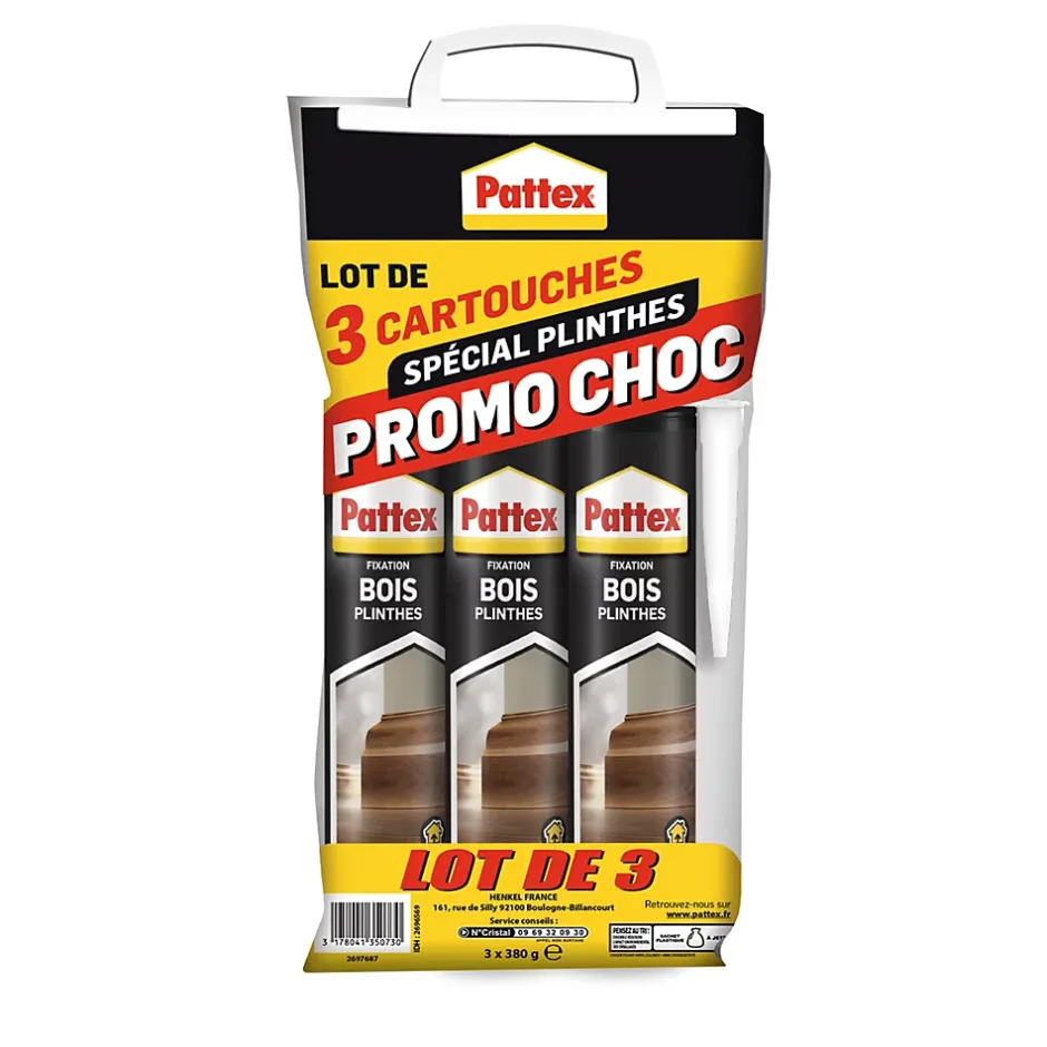 Colle bois plinthes & menuiserie Pattex 380g, lot de 3