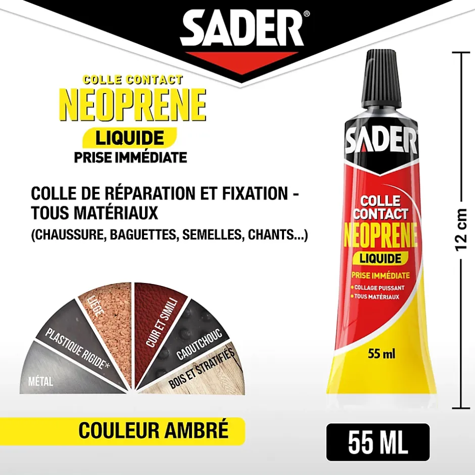 Colle contact néoprène liquide Sader tous matériaux tube de 55 ml