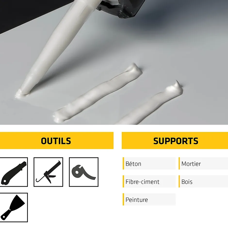 - Adhère sur de nombreux supports