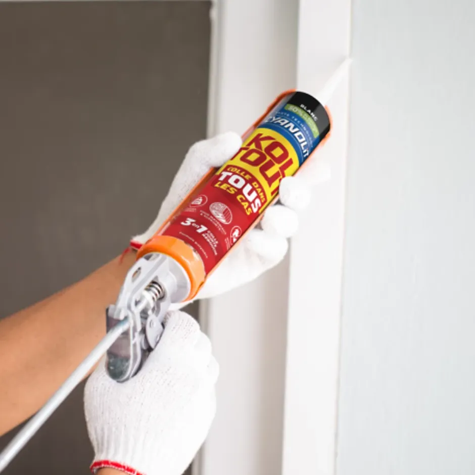 KOLTOUT COLLE DANS TOUS LES CAS – Colle polymère haute performance pour fixation, finition et réparation. Résiste aux chocs, vibrations, flexions et températures (-30°C à +80°C). Supporte 350 kg/10 cm², sec en 12h. Adhère sur tous matériaux (sauf PE, PP, PTFE). Colle sous l’eau, utilisable en intérieur et extérieur. Application facile : nettoyer, appliquer au pistolet, presser, laisser sécher 24h. Formats : 290ml, 125ml, 50ml. Température idéale d’utilisation : 5°C à 35°C.