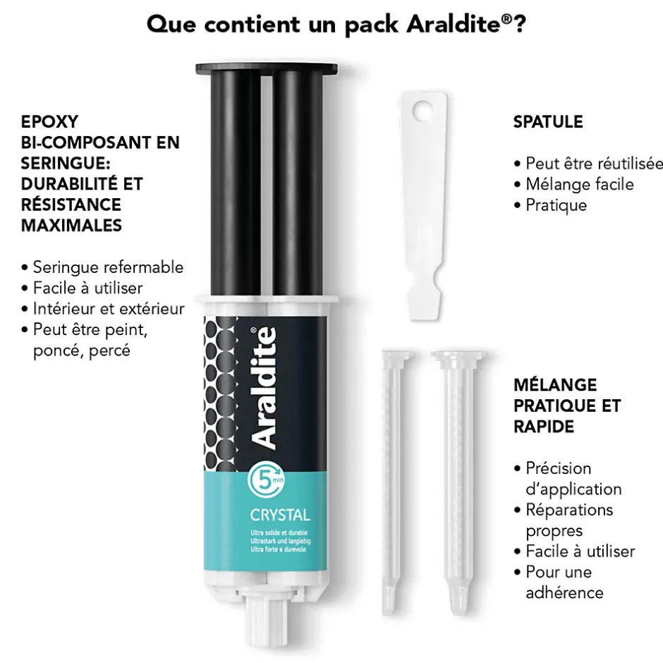 Colle haute performance epoxy à prise rapide Araldite Crystal 24 ml