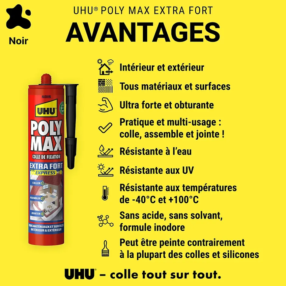 Colle mastic extra forte UHU Poly max noir 425g