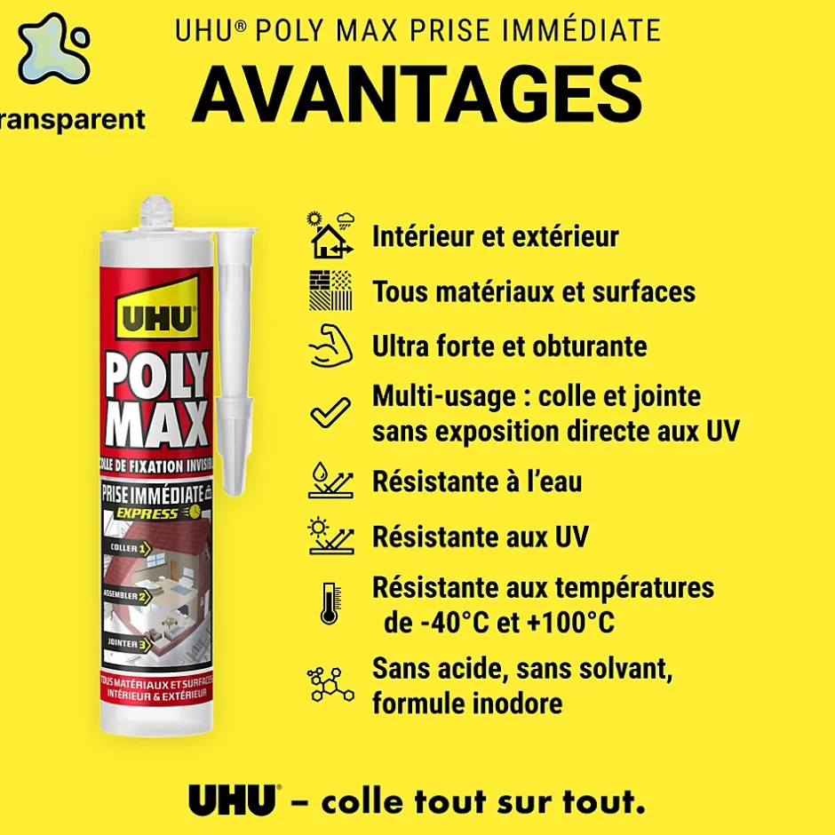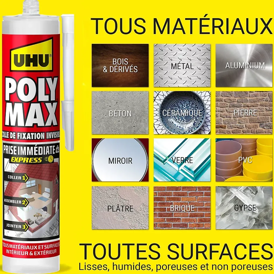 - Poly Max, la gamme UHU pour coller, jointer, reboucher tous les matériaux grâce à la technologie MSP