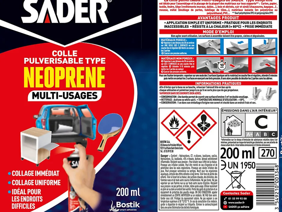 Colle Multi-usages Sader Pulvérisable type Néoprène Aérosol 200 ml – Collage puissant