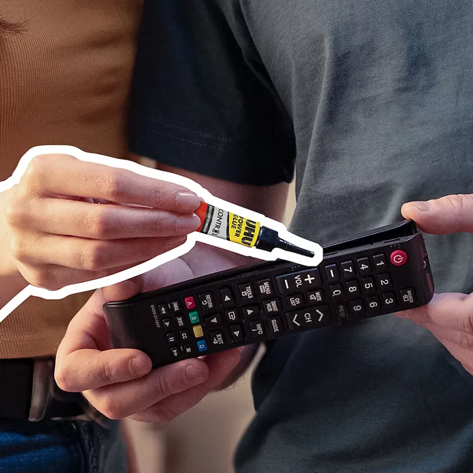 UHU Power glue liquide control est une super glue instantanée ultra forte, qui colle répare tous les matériaux en un temps reccord! Sous forme liquide qui pénètre dans les angles et les joints les plus étroits! Le tube est doté de la technologie Direct-Stop : ne goutte pas, avec un effet de succion rétroactif. Idéale pour coller de petites zones. Colle la plupart des supports solides et flexibles, ainsi que de nombreuses matières plastiques telles que le PVC rigide, l’ABS, le PS, le Plexiglas®, le polycarbonate (Makrolon®), les résines phénoliques (Bakelite®), le cuir, la porcelaine, la céramique, le métal, le bois, le liège, le feutre, le textile (essayer préalablement) et le caoutchouc. Mode d’emploi: Les zones à coller doivent être sèches et exemptes de poussière et de graisse 1: Pour percer l’opercule, tourner fermement le capuchon dans le sens horaire sur le tube. Astuce : ne pas appuyer sur le tube lors de son perçage 2: Dévisser le capuchon pour révéler l’applicateur 3: Par le biais de la canule, appliquer la colle directement à la sortie du tube aussi finement que possible sur une des faces (trop de colle ralentit de manière significative le processus de séchage !) 4: Presser immédiatement les pièces l’une contre l’autre 5: Après utilisation, nettoyer la canule à l’aide d’un mouchoir en papier sec et refermer le tube en replaçant le capuchon.