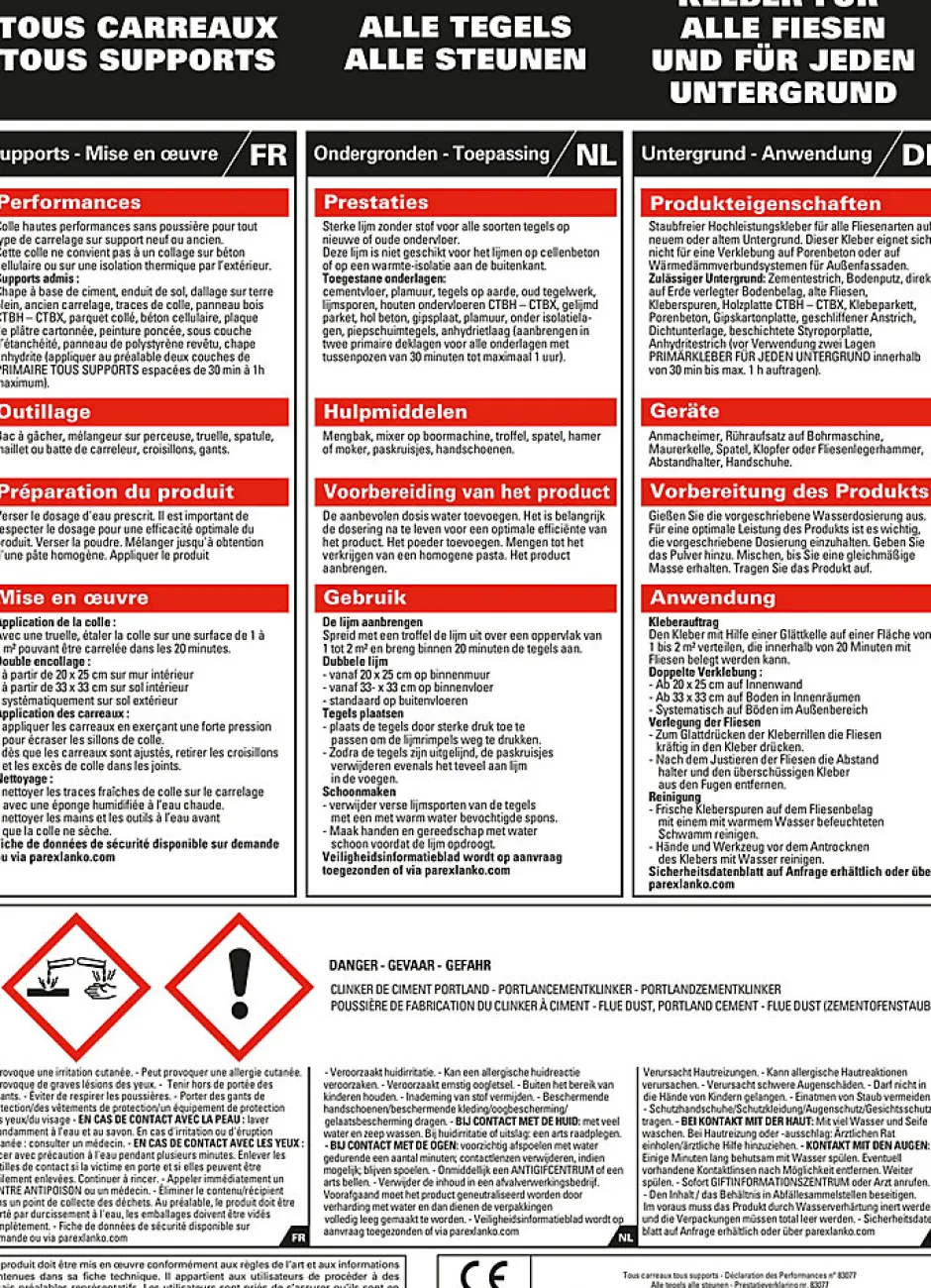 Colle tous carreaux, tous supports Parexlanko gris 25kg + 10% gratuit