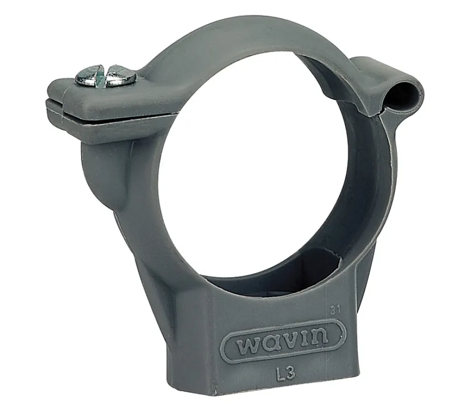 Caractéristiques techniques :Matériau principal : polypropylèneMontage : fermeture du collier par visFixation : insert fileté métallique 7 mmCouleur : gris