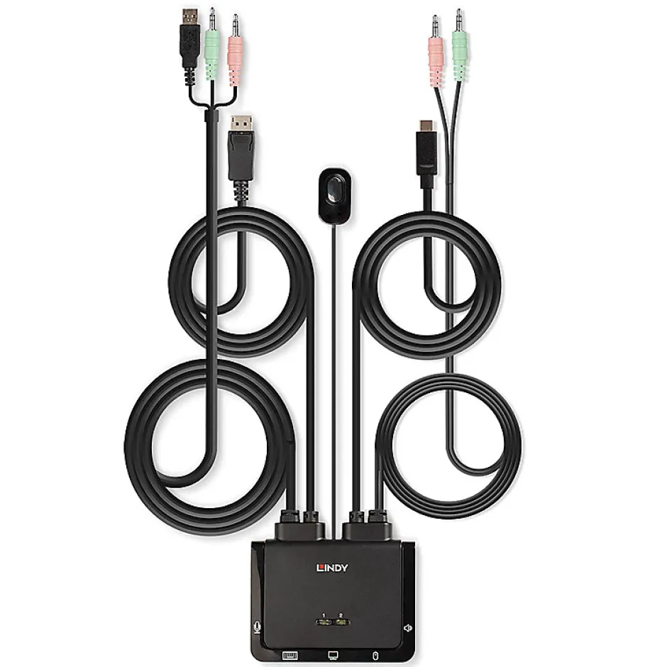 Contrôle un PC DP & laptop USB Type C à partir d’une console .cs349E4B60{text-align:left;margin:0pt 0pt 0pt 0pt;list-style-type:disc;color:#000000;background-color:transparent;font-family:Roboto,serif;font-size:9pt;font-weight:normal;font-style:normal} .csE1A752C6{color:#000000;background-color:transparent;font-family:Roboto,serif;font-size:9pt;font-weight:normal;font-style:normal;} .cs2654AE3A{text-align:left;text-indent:0pt;margin:0pt 0pt 0pt 0pt} Contrôle un PC DisplayPort et un ordinateur portable ou une tablette de type C à partir d un seul clavier, souris et moniteur.Commutation via le bouton-poussoir de l appareil, le logiciel ou les touches de raccourci clavierPrend en charge des résolutions jusqu à 4K 60HzCâbles intégrés pour une installation rapide et sans tracasGarantie 2 ans Le Switch KVM 2 Ports DisplayPort 1.2, USB Type C, USB 2.0 & Audio de est une solution compacte pour l accès et le contrôle d un PC équipé de DP et de tablettes d ordinateur portable ou de bureau de type C depuis un seul clavier, souris et écran. Grâce aux câbles intégrés, ce commutateur peut être facilement connecté directement au système, sans avoir besoin d acheter des câbles supplémentaires et en gagnant du temps lors de l installation. La prise en charge des résolutions jusqu à 3840×2160@60Hz garantit une qualité d image optimale, parfaite pour les contenus graphiques exigeants dans les configurations de jeux, le montage vidéo ou les postes de travail doubles. Le câble USB de type C intégré permet de contrôler une variété d ordinateurs portables et de tablettes à côté d un PC, idéal pour maximiser les espaces de travail dans les universités ou les bureaux résidentiels. Le port de sortie audio de l unité principale permet