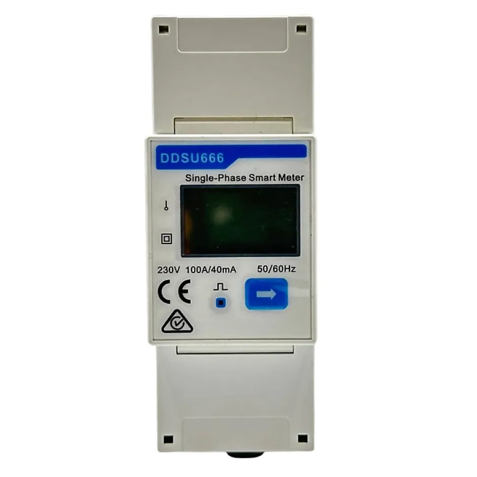 Compteur d’énergie DDSU666 : Suivi et maîtrise de votre consommation Le DDSU666 est un compteur d’énergie fiable et précis, idéal pour les installations photovoltaïques résidentielles. Associé à son tore 100A, il permet un suivi en temps réel, un affichage clair et un historique des consommations pour optimiser votre autoconsommation et réduire vos factures. Les + du produit Échantillonnage numérique de pointe pour une précision accrue Installation rapide sur rail DIN 35 mm Visualisation instantanée sur écran LCD Supervision possible via smartphone (iOS et Android) Livré avec un tore transformateur de courant 100A