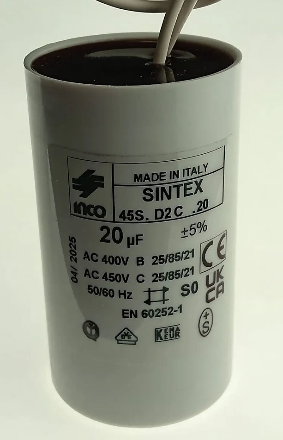 Condensateur de demarrage moteur 20 ?F. Pour moteur coulissant Roller 15 ou Mover 15