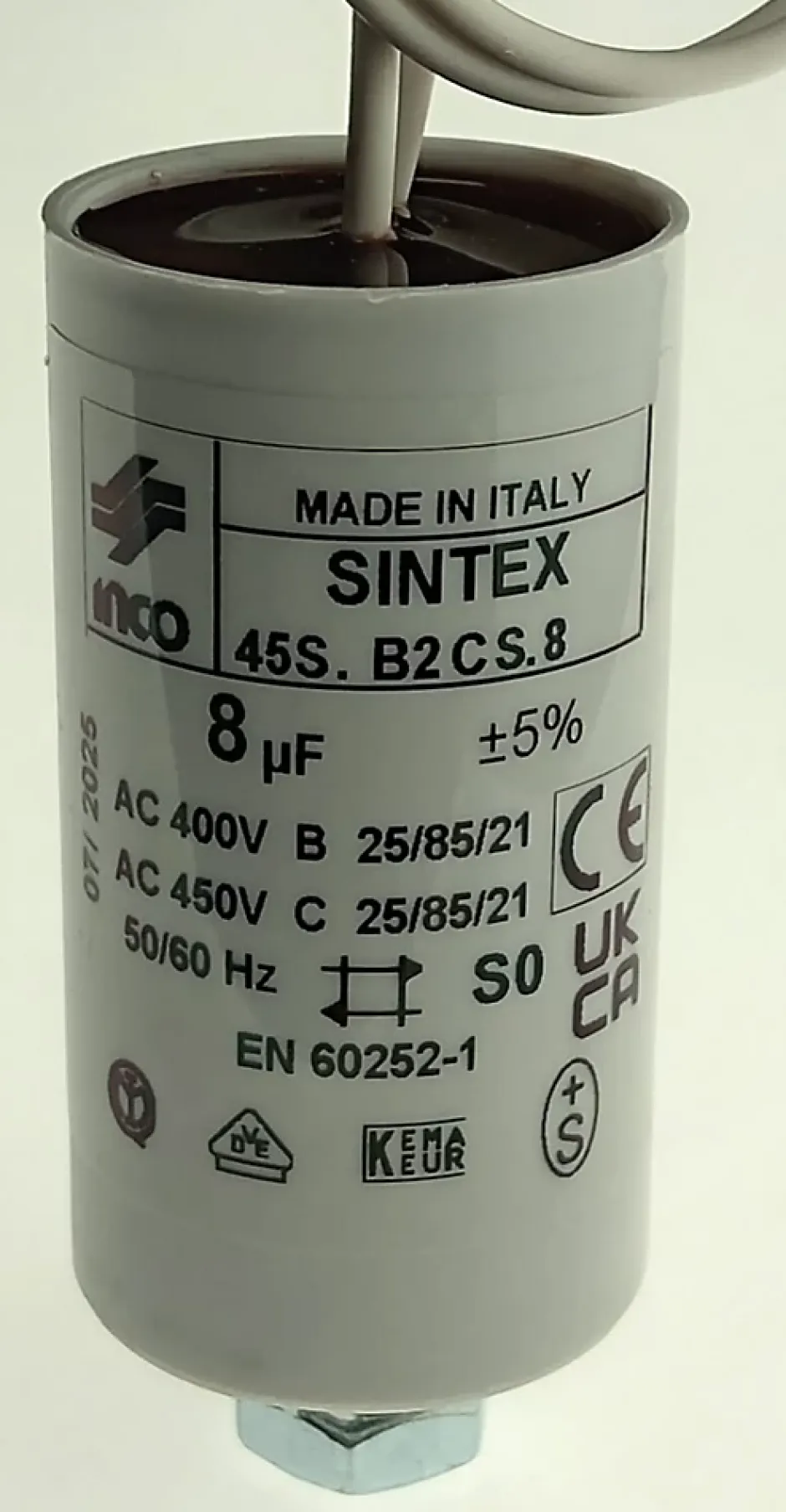 Condensateur (condo) à câble 8 ?F (microfarad) pour moteur 220 – 240 Volts, pour systèmes d’automatismes de portails battants ou coulissants. Compatibles toutes marques de moteurs en 230 Volts