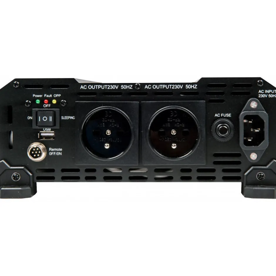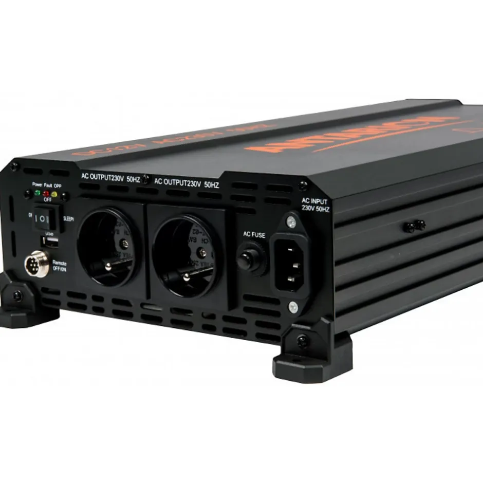 • Puissance de sortie 3000W• Priorité de commutation sur le 230 V intégrée• Livré avec une commande déportée de 5m• Puissance nominale max (1min) 3500W• Puissance en pic (1 s) 5900W• Consommation à vide • Port USB 5 V- 1 A• Connectiques fournies de 50mm²