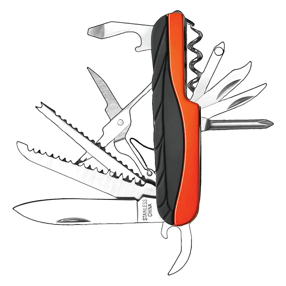 Découvrez la nature avec le couteau de poche Ironguard 15 en 1. Equipé de 15 fonctions différentes, c’est le seul outil de trekking dont vous avez besoin pour un week-end en plein air. Ses principales fonctions comprennent une lame, un ouvre-bouteille, un ouvre-boîte et des ciseaux. Les 15 fonctions sont : Pince à bec long, pince normale, pince centimétrique, lime simple, lime double, tournevis cruciforme, gros tournevis, tournevis moyen, petit tournevis, ouvre-boîte, couteau, scie, extracteur d’hameçon, écailleur à poisson, décapsuleur. . Fabriqué en acier inoxydable, c’est un fidèle compagnon pour la vie en plein air, le camping, le trekking, le bricolage. Idéal également comme idée cadeau pour la fête des pères, les anniversaires etc