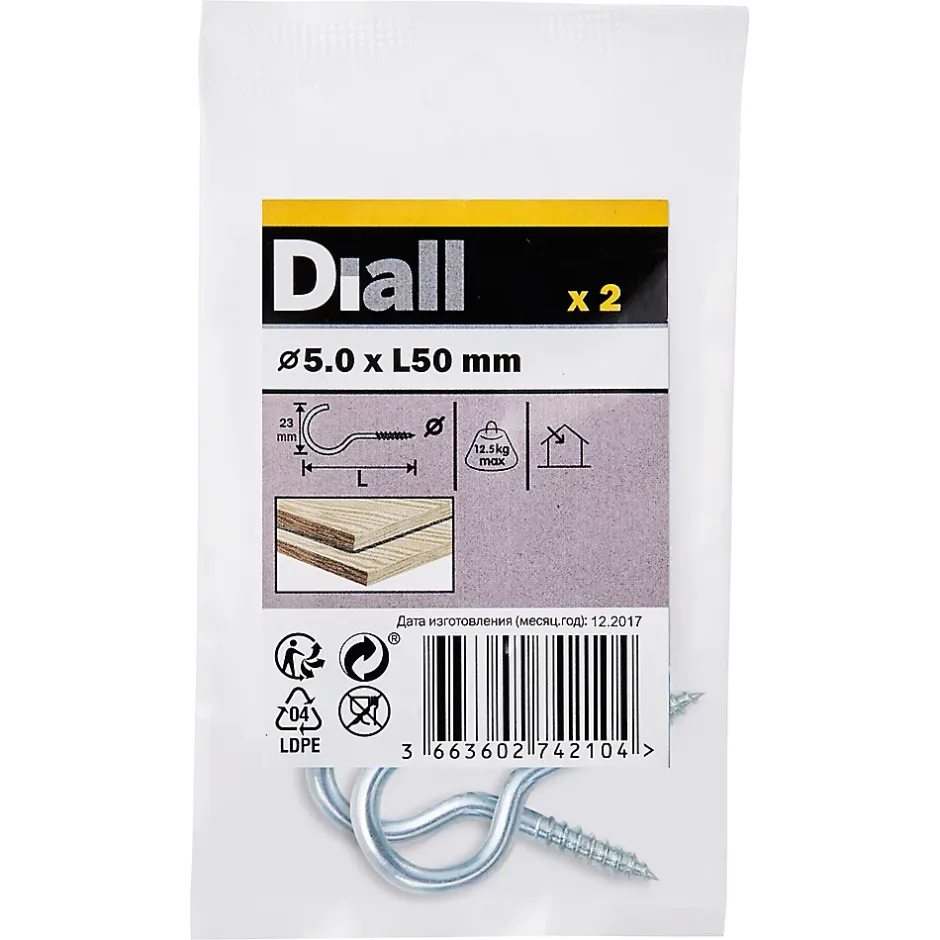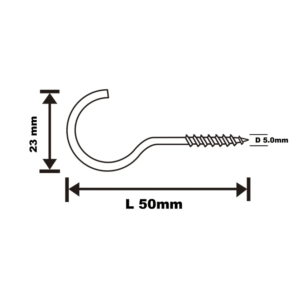 Crochet rond à visser en acier zingué 50×25 mm – 2 pièces