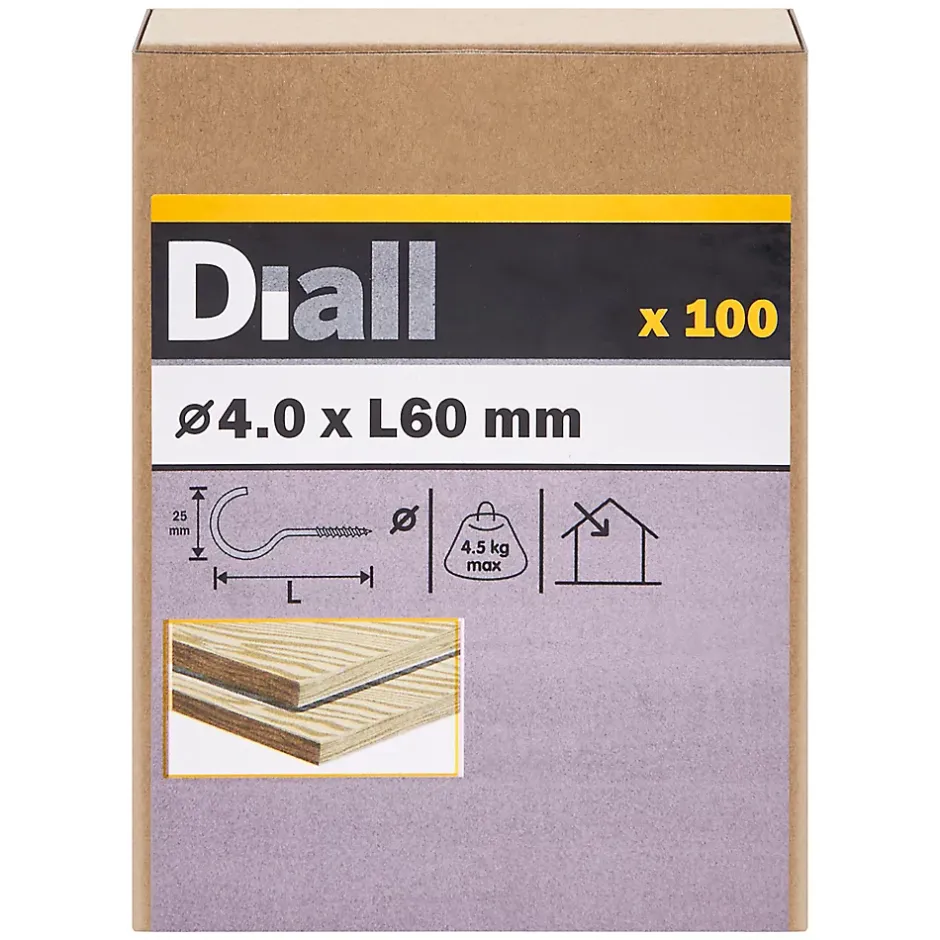 Crochet rond à visser en acier zingué 60×28 mm – 100 pièces