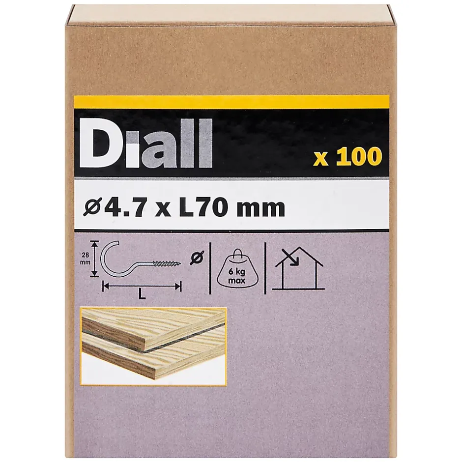 Crochet rond à visser en acier zingué 70×30 mm – 100 pièces