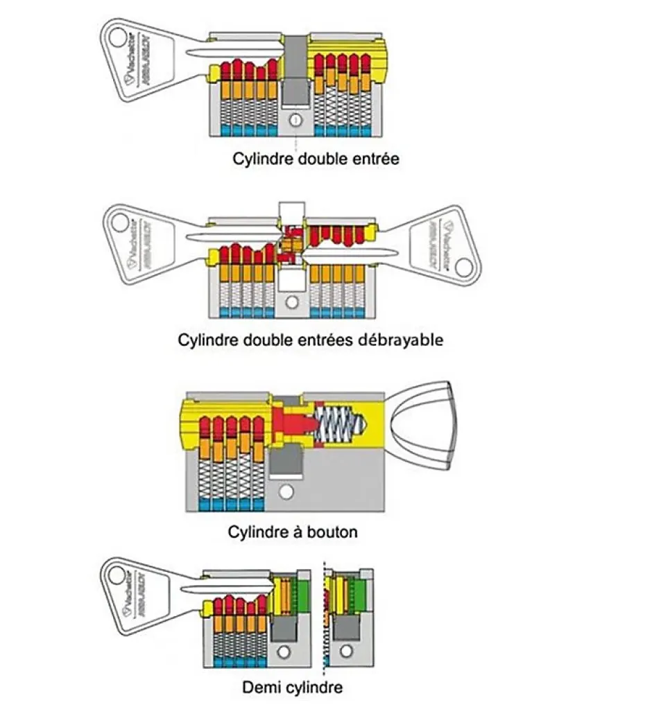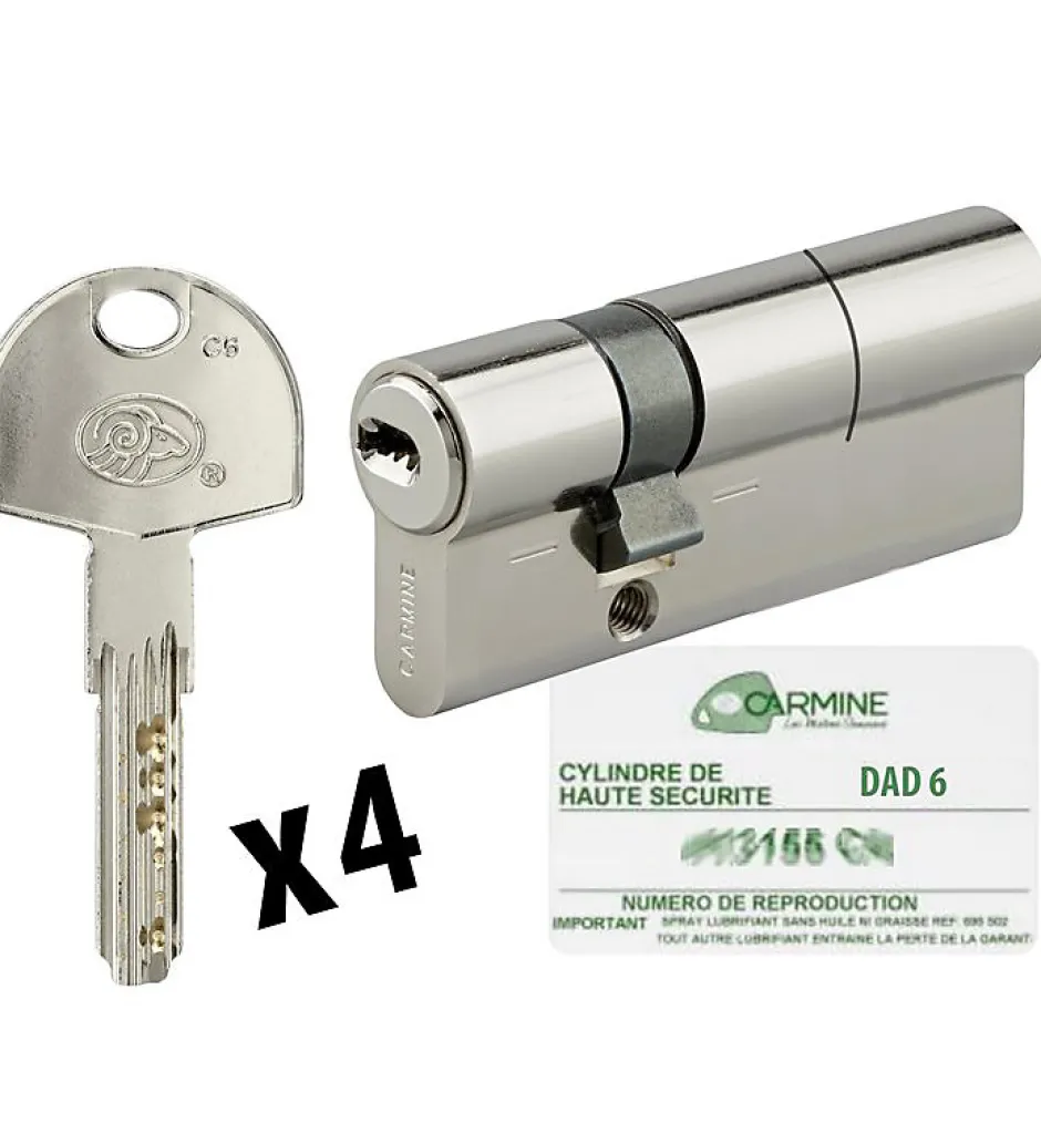 Cylindre débrayable de porte double entrée DAD 6 30 + 60 mmDétail du cylindre de sécurité Dad 6 : – Modèle : Dad 6- Longueur du cylindre 30 + 60 mm- Canon avec 2 entrées de clé (intérieur/extérieur)- Cylindre à profil européen- Cylindre débrayable : possibilité de mettre une clé des deux côtés du cylindres simultanément- Matière, finition : Laiton nickelé- 4 Clés réversibles à double crantage- Carte de propriété personnelle- Protection contre le crochetage et perçage – Cylindre anti corrosion (pour porte intérieure ou extérieure)Ce que nous aimons : Ce cylindre Dad 6 offre un niveau de sécurité élevé.Il possède une double protection renforcée anti crochetage et anti perçageCe cylindre en laiton nickelé possède deux entrées de clés pour l’ouverture de la porte. Le cylindre débrayable de porte est livré avec 4 clés réversibles et une carte personnelle de propriété, permettant la copie sécurisée de vos clefsAnticorrosion ce cylindre conviendra parfaitement aux portes d’entrée intérieur ou d’extérieur.