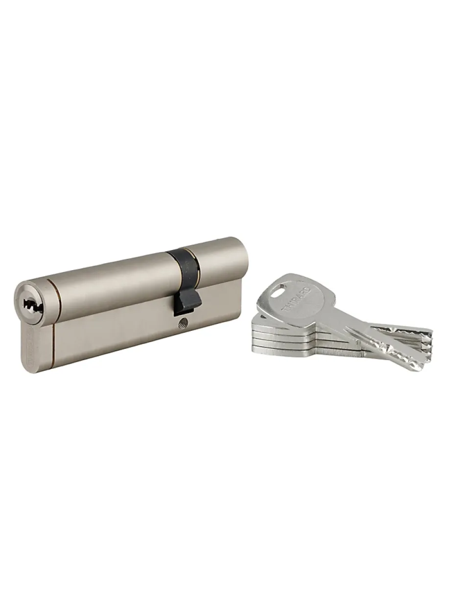 Comment prendre les mesures de son cylindre ?A l’aide d’une règle ou d’un instrument de mesure, il vous faut mesurer la distance entre le bord de votre porte (intérieur et extérieur) et le milieu du trou de la vis de fixation du cylindre. Il se peut que la distance ne soit pas la même des deux côtés.Dans le cas ou votre porte ait une mesure peu commune et ne convienne à aucun cylindre au millimètre près, il est acceptable de laisser dépasser son cylindre à l’extérieur de 5mm maximum, tolérance de dépassement qui garantit la sécurité de votre cylindre