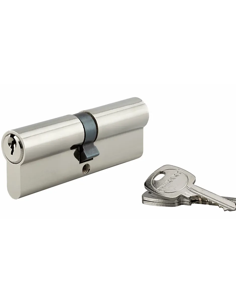 Profil européen laiton. Mécanisme à 5 goupilles. Panneton anti arrachement. 3 clés en acier nickelé.